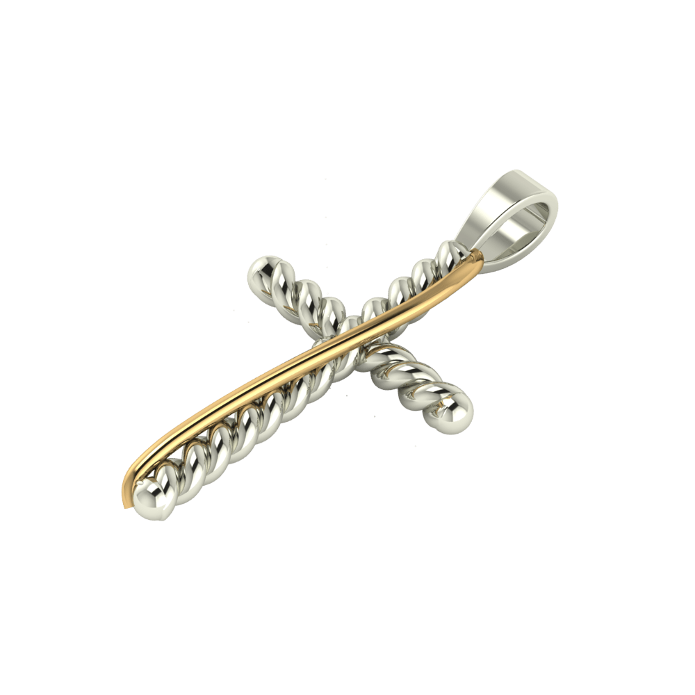 Twist Cross Silver with Yellow Gold (10K Gold)